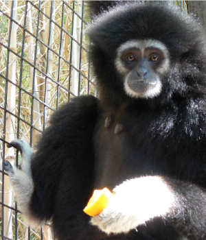 White-handed gibbons are endangered due to loss of habitat and illegal pet trade.