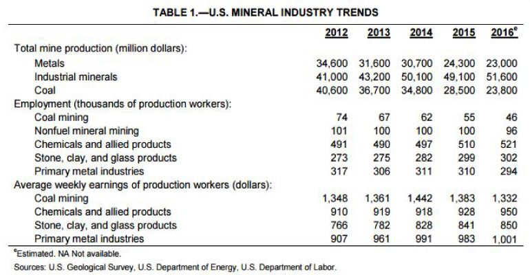 American Mineral Production for 2016