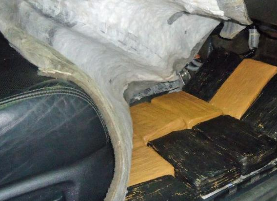 Officers discovered packages of marijuana from beneath the flooring of a smuggling vehicle