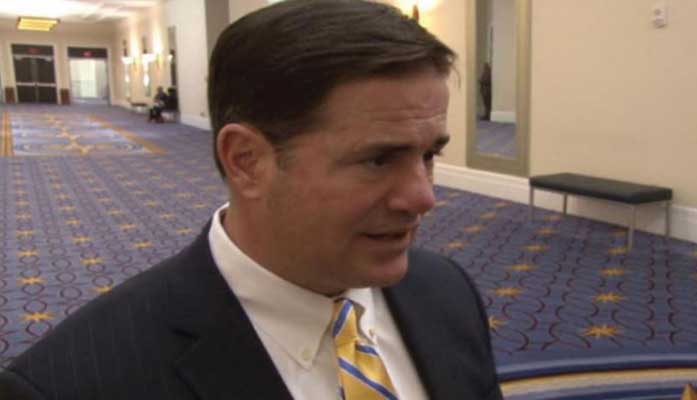 Arizona Gov. Doug Ducey at the Conservative Political Action Committee outside Washington joined other governors who said that states need to be the laboratories of government, not the feds. (Photo by Ziyi Zeng/Cronkite News)