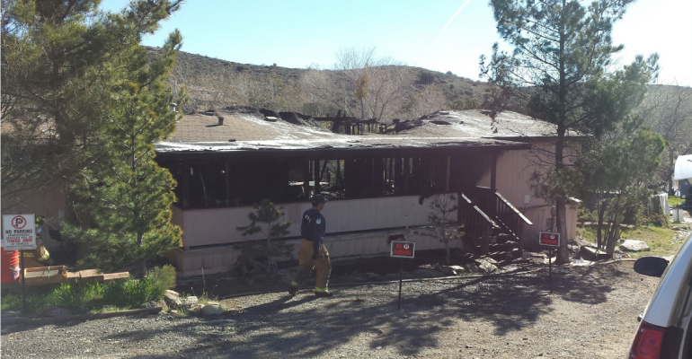 At about 4:20 AM this morning, deputies were dispatched to a structure fire at the Creekside Lodge in the 11000 block of Highway 69, Mayer. Fire units arrived in short order to find a fully engulfed double wide