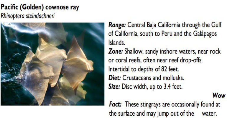 The following photos and information, from the Arizona Desert Museum, shows the rays which inhabit the Gulf of California. Visit the museum and be touched by a ray.