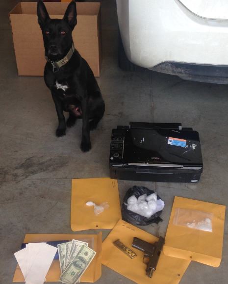 The deputy deployed his K9 partner Vader for a free air search of the exterior. During the walk along the driver’s side of the Toyota, K9 Vader displayed trained alert signals to the deputy indicating the odor of drugs. At this time, Sturges admitted he had a handgun hidden under the front seat but continued to deny any drugs would be found in their car.