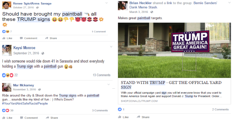 Those reports also ignored that during the run-up to the 2016 General Election, the paintball Trump theme littered the pages Facebook.