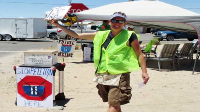 Those rumblings are now maturing into a growing movement. On May 20 hundreds of people stopped at Picture Rocks and Sandario Roads to sign petitions and postcards opposing a new highway through their homeland. They took hundreds more cards home for friends and family to sign and send in to the Arizona Dept. of Transportation before their June 2 comment deadline on Interstate 11 “alternative routes.” Neighbors not known previously for political activism hit the roads with signs and bullhorns to spread the word. They did it peacefully, but with passion.