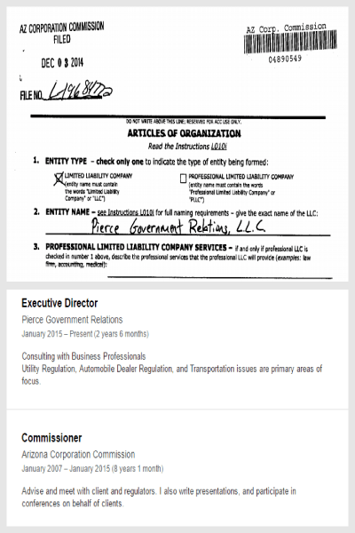 In a statement to The Arizona Republic in 2014, Gary Pierce said there was no tie between his votes on the commission and his son’s campaign for office. “It should go without saying, but to set the record straight, I have never made a deal with APS to cast a vote in exchange for a benefit to my son Justin Pierce’s campaign for Secretary of State,” he wrote.