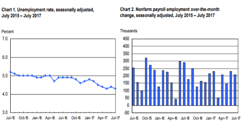 The Trump administration rolled out a positive jobs report for the month of July 2017.  Nonfarm payroll employment rose by 209,000 in July, and the unemployment rate, at 4.3 percent, was little changed.