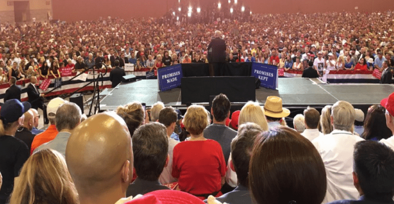 “This was the scene of my first rally speech,” he said. Trump visited Arizona seven times as a candidate.