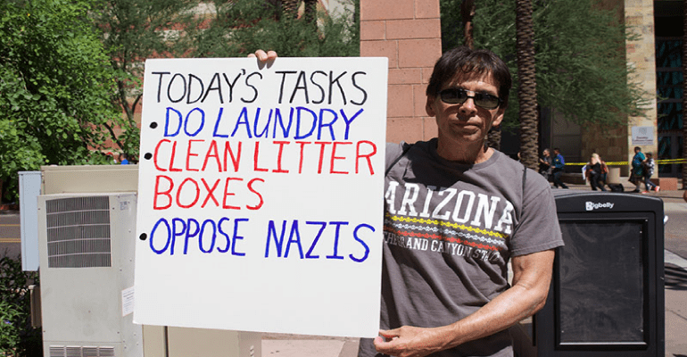 Trump, on his first visit to Arizona since he was elected in November, struck familiar notes about an America for all, saying it is a “movement based on love.” He said the media had twisted his condemnation of “those who perpetuate hate and violence,” referring to the Charlottesville, Virginia white supremacist rally where one protester was killed.