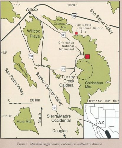 The features of the Chiricahua Mountains are put in context as follows: