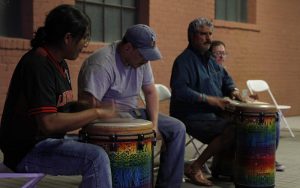 Members of the PSA Art Awakenings perform drum group perform during the candlelight celebration. (Photo by Lysandra Marquez/Cronkite News)