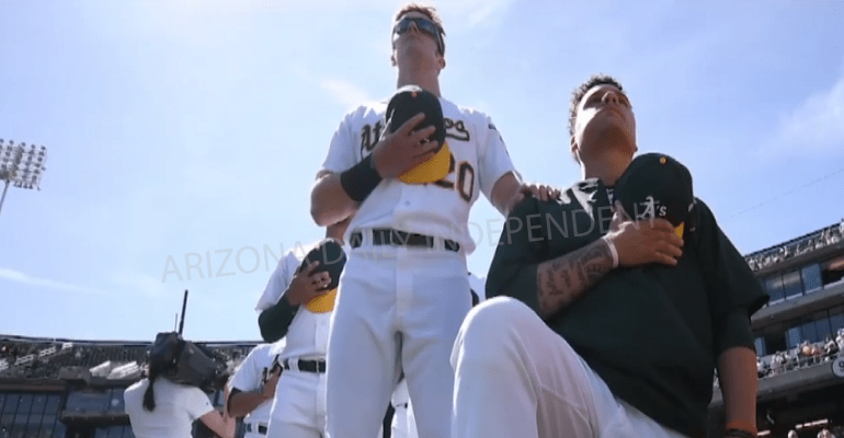 The Scottsdale Police Department has confirmed that the MLB’s lone National Anthem kneeler, Bruce Maxwell, of the Oakland Athletics was arrested on October 28, 2017 at approximately 6:00 p.m. at his Scottsdale residence. Police responded to his residence after receiving a call about him pointing his gun at a female food delivery person.