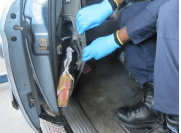 Friday morning, officers referred a 23-year-old woman from Eloy, Arizona for a secondary inspection of her GMC SUV as she was returning to the U.S. through the Dennis DeConcini crossing. During the inspection, a CBP canine’s alert led officers to find almost 133 pounds of marijuana, worth in excess of $66,000, hidden throughout the vehicle.