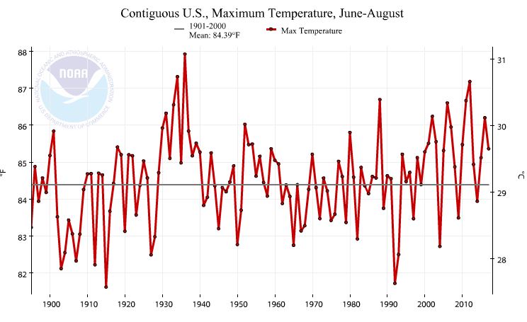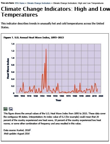 But plots from the EPA and NOAA show that the most intense heat waves occurred in the 1930s.