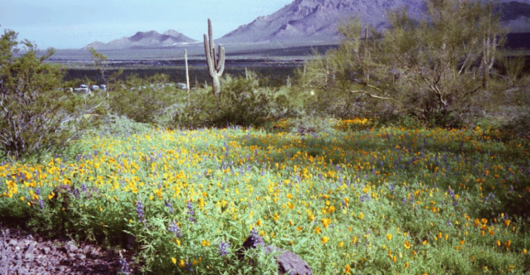 If you drive Interstate 10 between Tucson and Phoenix, about half way you pass between the Picacho Mountains (on the northeast side) and Picacho Peak (on the southwest side). Picacho Peak State Park is a frequent destination for picnics, rock climbing, and viewing spring wildflowers.