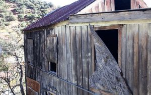 Some of the dilapidated homes in Bisbee have been boarded up and are occupied off and on by squatters. (Photo by Kianna Gardner/Cronkite News)