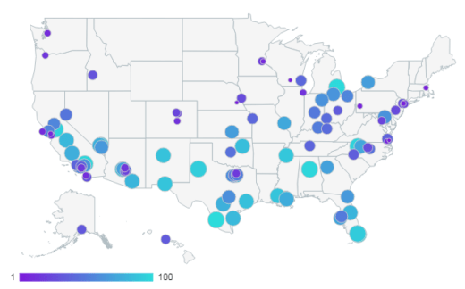 Distribution of the 100 Largest Cities Analyzed by WalletHub.