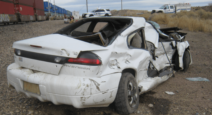 Trooper Roanhorse approached the vehicle, he found an unresponsive man seat belted and unconscious in the driver’s seat. He also smelled a strong odor of an alcoholic beverage(s). As the trooper crawled into the vehicle to remove the driver’s seat belt, he looked up and saw a BNSF Railway train approaching from around a curve. At the same time, the railroad signal activated and the crossing arms lowered.