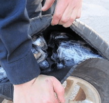 Smugglers attempted to hide meth within the spare tire and spare tire storage area