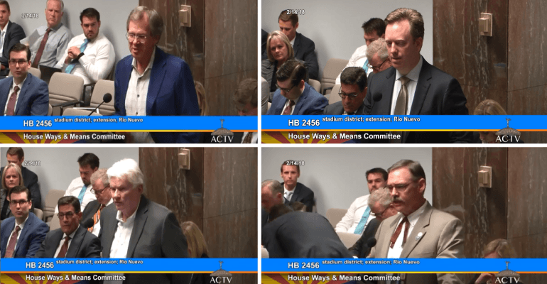 Rio Nuevo District Board chair, Fletcher McCusker, and car salesman Jim Click joined Finchem in a rare appearance before the committee.