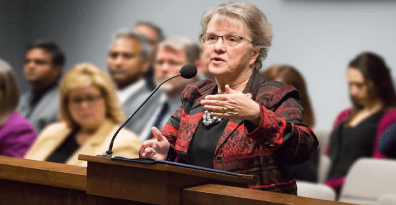Immediately Terry Mendoza, of Mesa, shouted out, “How much are you worth, Nancy?” Pelosi responded, “No, we’re not talking about that.”