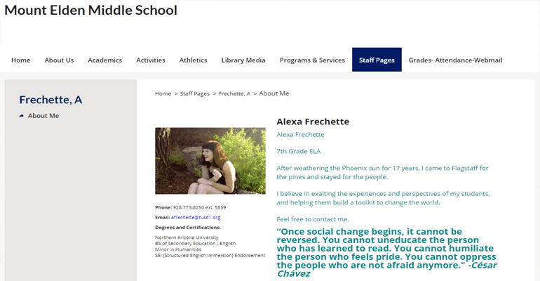 In 2015, Frechette was part of a group of 50 NAU students who participated in a sit-in at the Babbitt Administrative Center “to show solidarity against what they say has been discriminatory action by the university,” according to the Arizona Daily Sun.