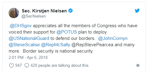 In a tweet Friday, Kirstjen Nielsen, DHS secretary, expressed her appreciation for Trump’s plea to strengthen the border.