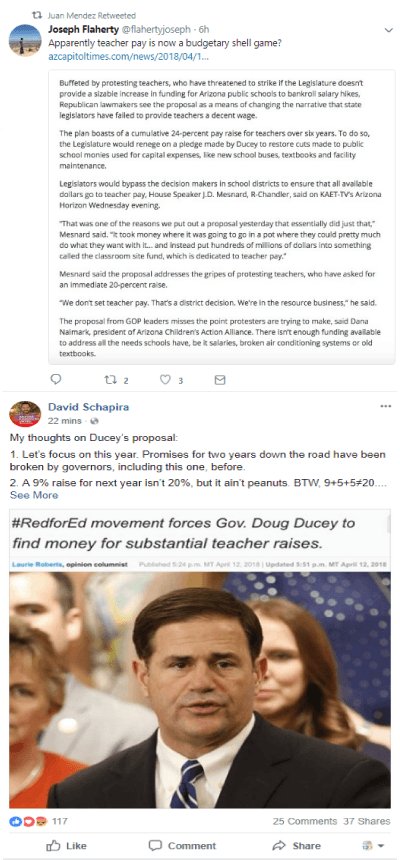 Earlier in the day, Speaker of the House J.D. Mesnard announced his proposal to increase teacher pay. The governor rolled over Mesnard and rolled out his own plan, leaving legislators in disbelief.