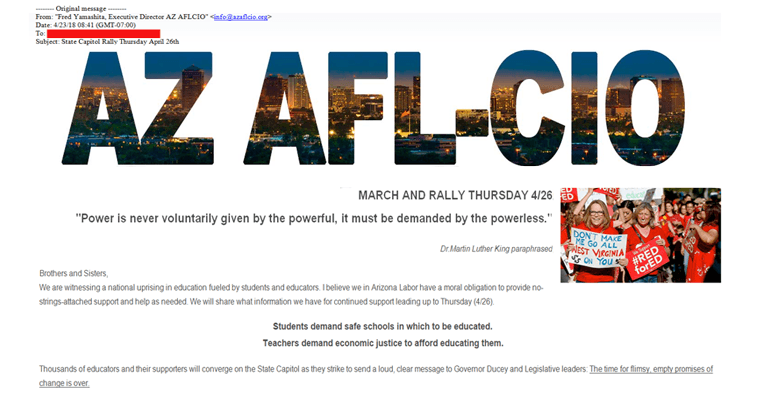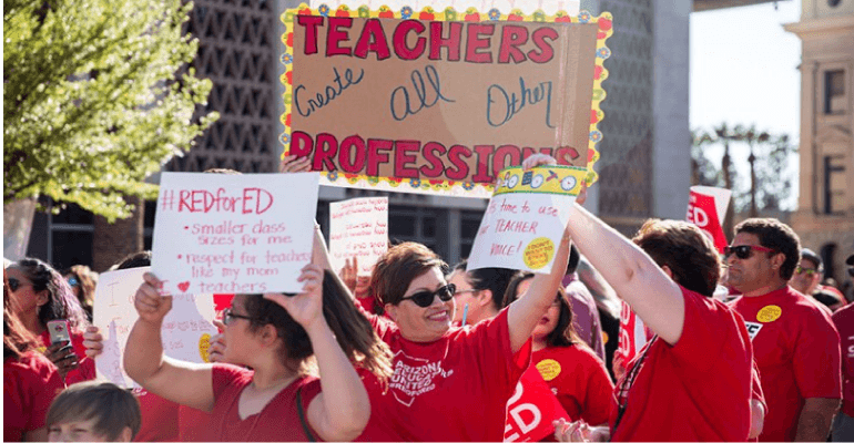 #Redfored has been described by the AFL-CIO as a “national uprising.” Although it has been promoted as simply a campaign to raise teachers’ salaries, the Arizona Education Association and Arizona Teacher’s United rejected an offer of a 20 percent increase in pay by Governor Doug Ducey. That rejection and the decision to walkout (strike) today was seen as evidence by critics that organizers are strictly promoting the progressive “Resist Movement” agenda to fuel the “Blue Wave” this election cycle.