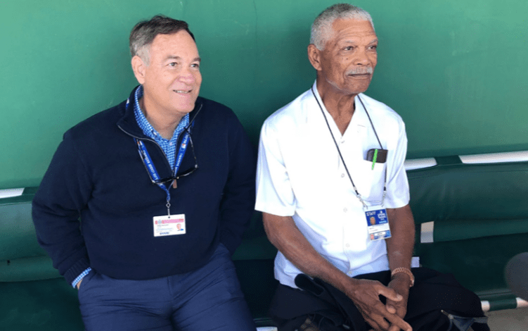 FelipeAlou2 Felipe Alou, right, was convinced by author Peter Kerasotis to write a book about his life. Alou is a big reason so many Dominican players are in the majors. (Photo by Katie Woo/Cronkite News)