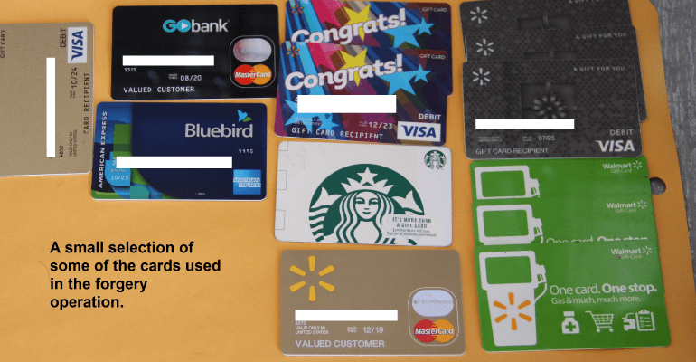 Deputies verified that the suspects had rewritten the magnetic strip information on several cards seized. Deputies also seized a card reader/writer/encoder commonly used by fraud rings to re-write magnetic strips.