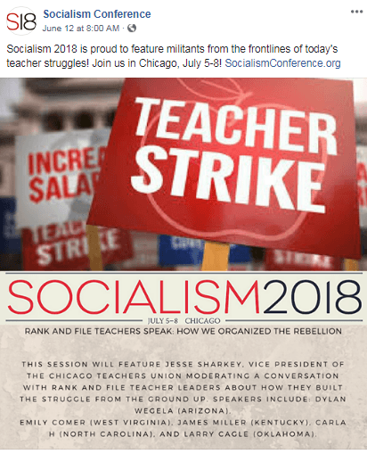 Karvelis scrubbed his social media presence and denied that he was leading a radical movement at the time. He and his supporters, including many in the mainstream media, went on the offense and took umbrage with Syms’ simple observation. The media was largely complicit, or they got played. In either case, Karvelis’ appearance at the Socialism 2018 Conference in Chicago from July 5-8, indicates that he and his “fellow militants” no longer care to hide their agenda, and it exposed the degree to which the media again failed to report on simple truths that would have profoundly altered the coverage of a major event (the #Redfored strike and rallies.)