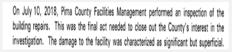 Taking the story public appears to have been what was needed to get the now-five-month-old report into the light of day. Huckelberry sent the “sanitized” report to the Supervisors on July 12, and Supervisor Ally Miller immediately posted it on her web page. World View’s cover memo to Huckelberry is dated May 21.
