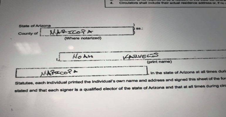 Examiners also found petitioners who hadn’t filled in the county for their petition, or had pre-filled dates and addresses in the same handwriting but with different signatures. We also found notaries whose stamp or handwriting was illegible or the date they stamped their seal on the petition, did not correlate with the dates of signatures. We found notaries who only became certified the month before, which is not a violation but was certainly suspect. This “cause” was so important to them, but not enough to take the time to train their petitioners. Many petitioners were paid and from out of state; not even registered to vote in Arizona. However, as long as a petitioner is eligible to vote (not a felon), they may qualify to gather signatures and get paid for it.