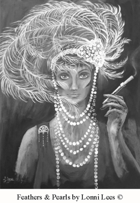 ![]() | My wife Lonni and I are both members. Lonni, besides being a novelist, is also a fine artist and displays (and sometimes sells) her work in most of the shows. One of my favorites of Lonni’s paintings is “Feathers & Pearls” painted for a “black & white & shades of grey” show. I produce the WomanKraft Gallery newsletter which is called “The Castle Voice.” See the latest issue here. The Castle Voice contains a list of all shows, and descriptions for WomanKraft’s extensive schedule of classes. Most shows have receptions on two Saturday nights with free admission, snacks, and beverages. Check the schedule in the Castle Voice. |