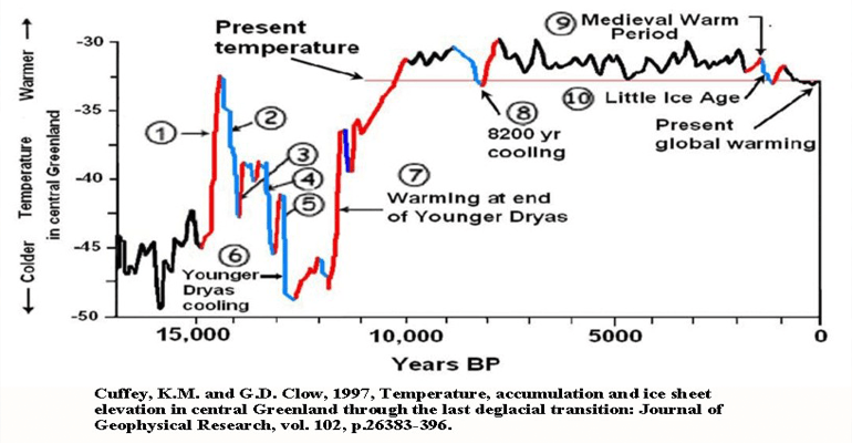 The global push for renewable energy generation of electricity is based on the false premise that we need to reduce carbon dioxide emissions to forestall dangerous warming. How much warming is dangerous? The IPCC says 2°C is dangerous. They are ignoring the Cretaceous Period when global temperature was at least 10°C warmer and the Paleocene-Eocene when temperatures were up to 19°C warmer. (link) The IPCC’s arbitrary 2ºC (3.6ºF) “tipping point” has no basis in science. In fact, during the last 10,000 years, the temperature has cycled several times through warm and cool periods of 2ºC or more.