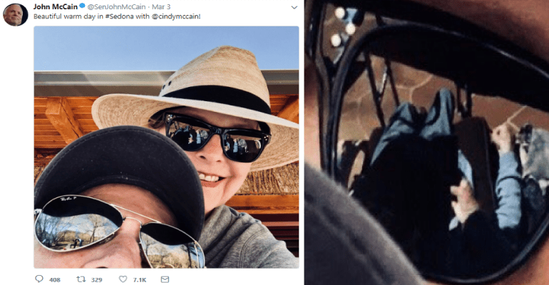 On March 3, Sen. John McCain tweeted a selfie with his wife Cindy. The senator received mostly well wishes from his Twitter followers.