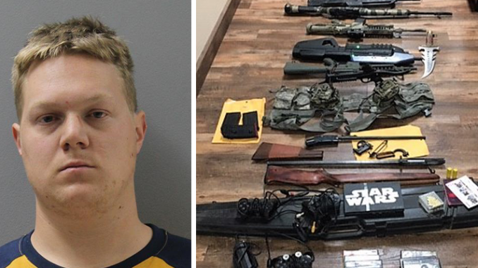 According to the Yavapai County Sheriff’s Office (YCSO), the victim was away from his residence for several days, and upon return discovered the burglary. A person living in the home, 22-year-old Garrette Remington, had apparently moved out while the victim was away as Remington’s room was found completely cleaned out. The room where the victim kept his guns was locked when he left. The victim found that the door into this room had been forced open based on damage to the door frame. The victim suspected Garrette might be involved and confronted him via a text message. Garrette denied any involvement and indicated he was now living in California.