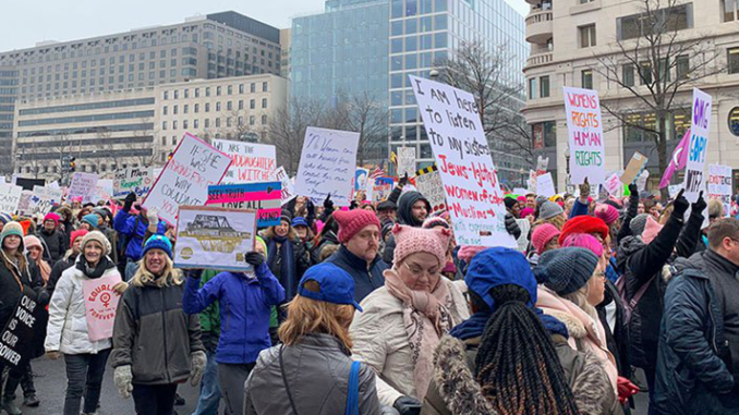 Trump was the spark for the original Women’s March, when hundreds of thousands of women descended on the National Mall one day after the president’s inauguration for a star-studded protest. Sister rallies in cities around the country and the globe boosted the number into millions, organizers said.