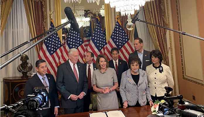 House Democrats gather Friday after passing a budget bill to end a five-week government shutdown that the Congressional Budget Office said cost the U.S. economy $11 billion. Much of that will be recovered, the CBO said, but $3 billion is permanently gone. (Photo by Andrew Howard/Cronkite News)