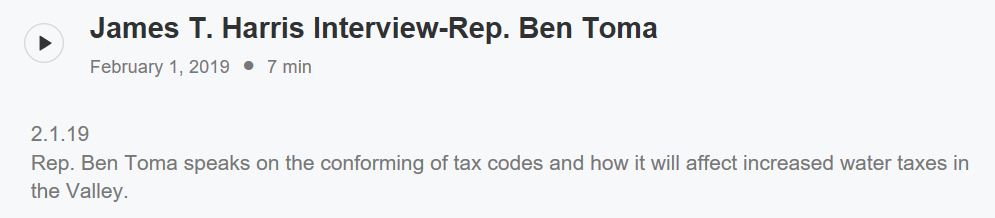 Listen to Rep. Ben Toma discuss his tax conformity bill with KFYI’s James T. Harris