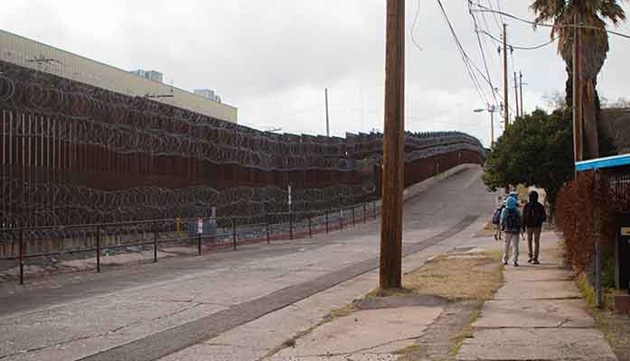 nogales Hours before the City Council’s vote Wednesday, schoolchildren walk past concertina wire newly added to the steel fence that runs through downtown Nogales. (Photo by Delia Johnson/Cronkite News)