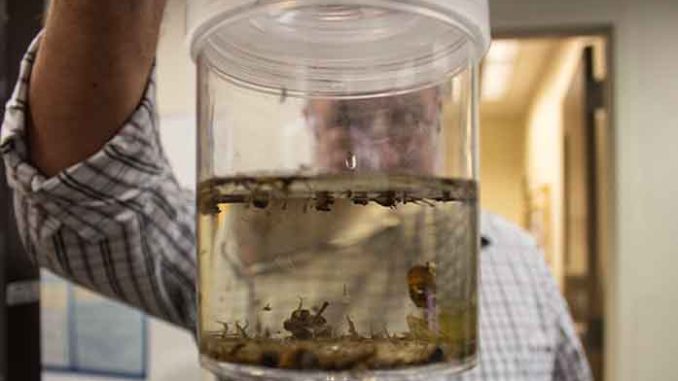 The traps are individually barcoded and numbered so the inspectors can keep track of what they find. The number of mosquitoes the traps catch varies depending on weather conditions and the amount of stagnant water nearby. The captured mosquitoes are separated by gender because only the females bite and carry West Nile, Armijo said.