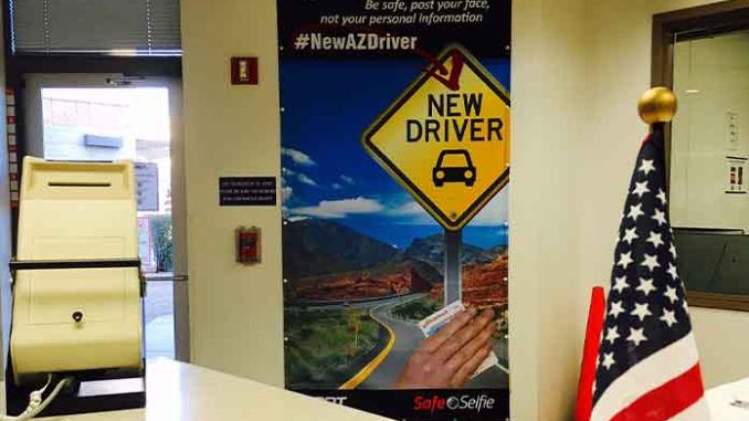 PHOENIX — The Arizona Department of Transportation is warning drivers to avoid inadvertently exposing too much information in their proud selfie moments.