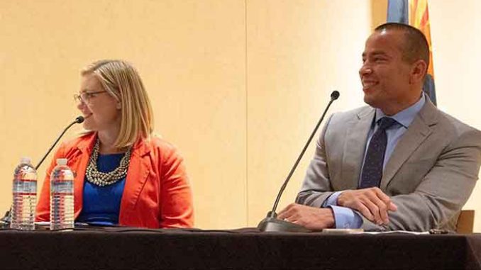 PHOENIX – Mayoral candidates Kate Gallego and Daniel Valenzuela squared off Tuesday night at the Burton Barr Library, discussing such big-picture issues as public safety and the economy but clashing over light-rail expansion, homelessness and recently approved renovations to Talking Stick Resort Arena.