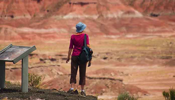 A visitor stops at the Petrified Forest National Park, one of many national and local sites in Arizona that have benefited from the Land and Water Conservation Fund over the years. (Photo courtesy National Park Service)