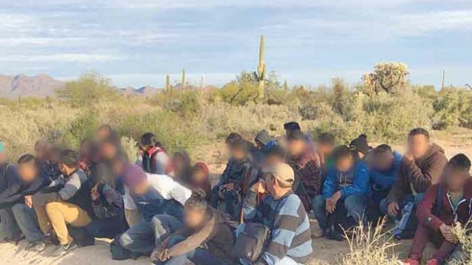 Border Patrol agents apprehend a large group of illegal aliens west of Lukeville