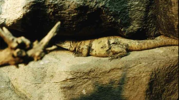 Chuckwalla taking refuge in rock crevasses at Arizona-Sonora Desert Museum [Photo by Jonathan DuHamel]