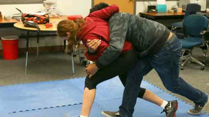 Members of the Native American Club at Westwood High School in Mesa learn ways to protect themselves from violence, which an estimated 80 percent of Native women are likely to experience in their lifetimes. (Photo by Meg Potter/Cronkite News)