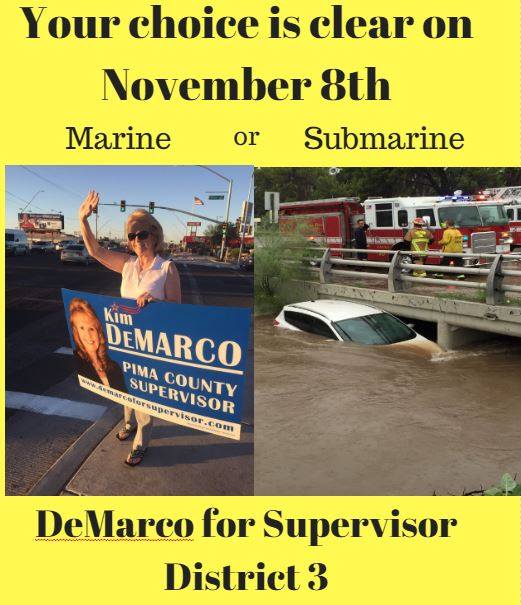 Who is behind this ad? Based on early social media posts, it looks likely that former candidate for BOS John Backer may be involved. During his campaign against Steve Christy and Marla Claussen in 2016, Backer used creative marketing to reach large numbers of people all the smallest budget of all the candidates. Some of Backer’s work includes a meme which refers to Supervisor Bronson as a “Submarine” referencing her destroying a county vehicle by ending up in a wash during a storm:
